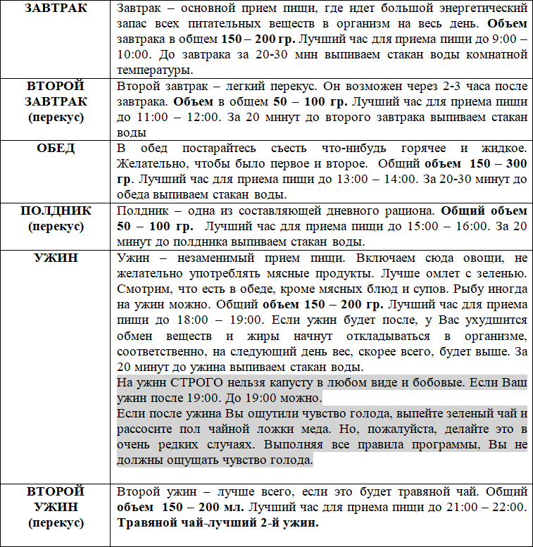 11. НЕ ЗАПИВАТЬ. Запивать можно только завтрак и 2-й завтрак. Остаоьные приемы пищи не запиваем. Только через 20 минут после еды.