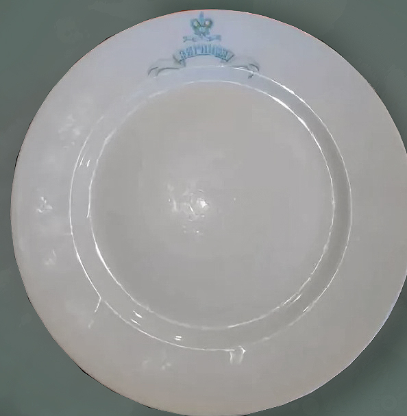 Блюдце с яхты ЕИВ Михаила Александровича с клеймом «Зарница». Кузнецовкий фарфор, диаметр 16 см. Собрание А.Н. Каменского.