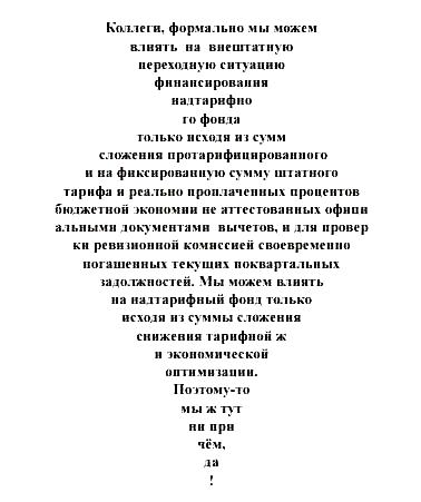 Из строгой речи зам-зава «анамсиРОНО» никто из слушателей не понял ни слова, но всем стало абсолютно ясно, что очередная обдираловка нищенских учительских кошельков неминуема, и жаловаться опять некому.