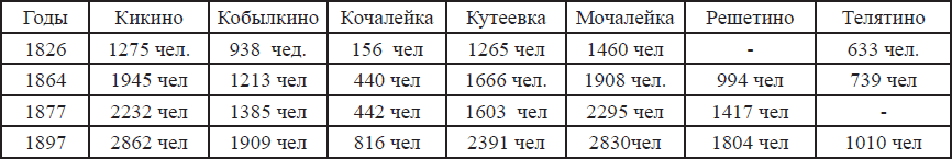 Довольно частым явлением были пожары, от которых погибала большая часть каменских сел. В с. Телятино Чембарского уезда в 1866 г. выгорели почти все дома; в 1868 г. в Кочалейке сгорела русская часть села. Тем не менее, татарские села развивались по возрастающей линии, о чем можно судить по таблице, приведенной в исследовательской работе И.Х. Гуркина "Социально-экономическое развитие татарских сёл западного региона Пензенского края в XIX – нач. XX в."[25].