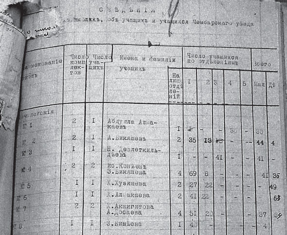 СВЕДЕНИЯ О ПЕДАГОГИЧЕСКИХ РАБОТНИКАХ ЧЕМБАРСКОГО УЕЗДА И ЧИСЛЕ УЧАЩИХСЯ В НОВЫХ СОВЕТСКИХ ШКОЛАХ:Мочалейская школа: всего 8 школ, в 4 из них по 2 комплекта (3-х классное обучение) учащихся. Преподаватели: Абдулла Алмакаев, А.Бикяшев, Н.Девлеткильдеев, Ибрагим Канеев и З.Бикяшева, Х.Хузяшева, Х.Алмакаева, Х.Акжигитова и А.Дасаева, З.Бигеева. Учащихся: 378 (192 мальчика и 186 девочек)[33].