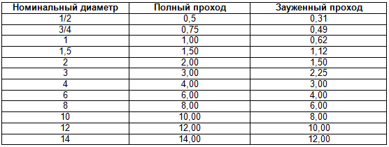 Шаровые краны могут изготавливаться полнопроходными или зауженными. В полнопроходных кранах диаметр проходного сечения соответствует внутреннему диаметру трубопровода. Максимальное заужение прохода (минимальное сечение) регламентировано, например, BS 5351 и приведено в табл. 2.2.