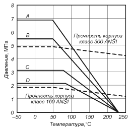 Рис. 2.32. Зависимость рабочего давления в шаровых кранах