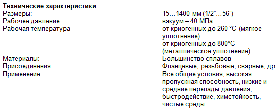 Другими характеристиками шаровых кранов являются минимальное гидравлическое сопротивление, низкий крутящий момент, поворот на 900 между положениями «закрыто» и «открыто», низкие эксплуатационные затраты, компактная конструкция и пожаробезопасное исполнение, предусматривающее закрытие крана в случае возникновения пожара на заводе.