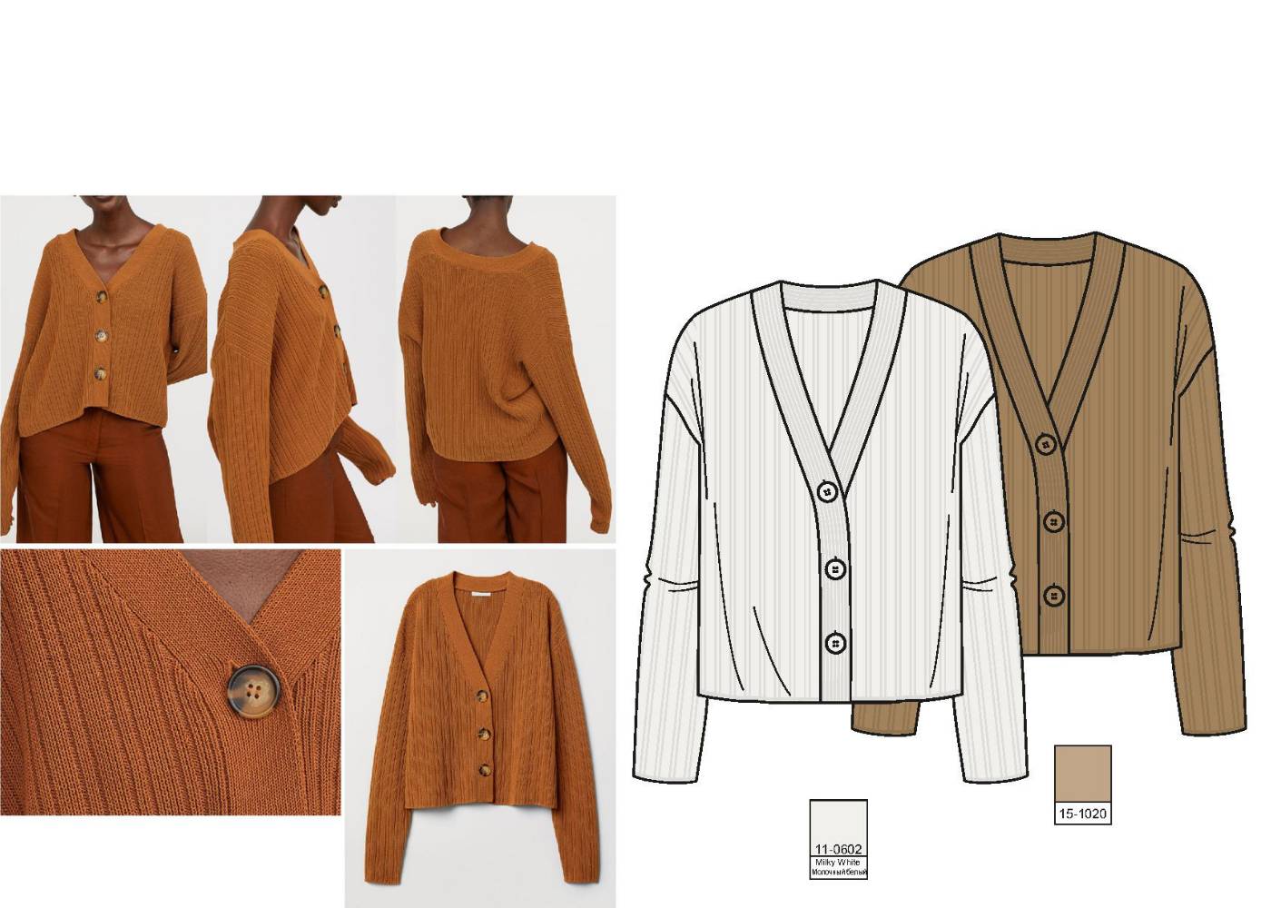 Рисунок 1.16 – Фотография готовой модели и рисунок женского кардигана. Изделие показано на фигуре, дизайнер А. Мороз