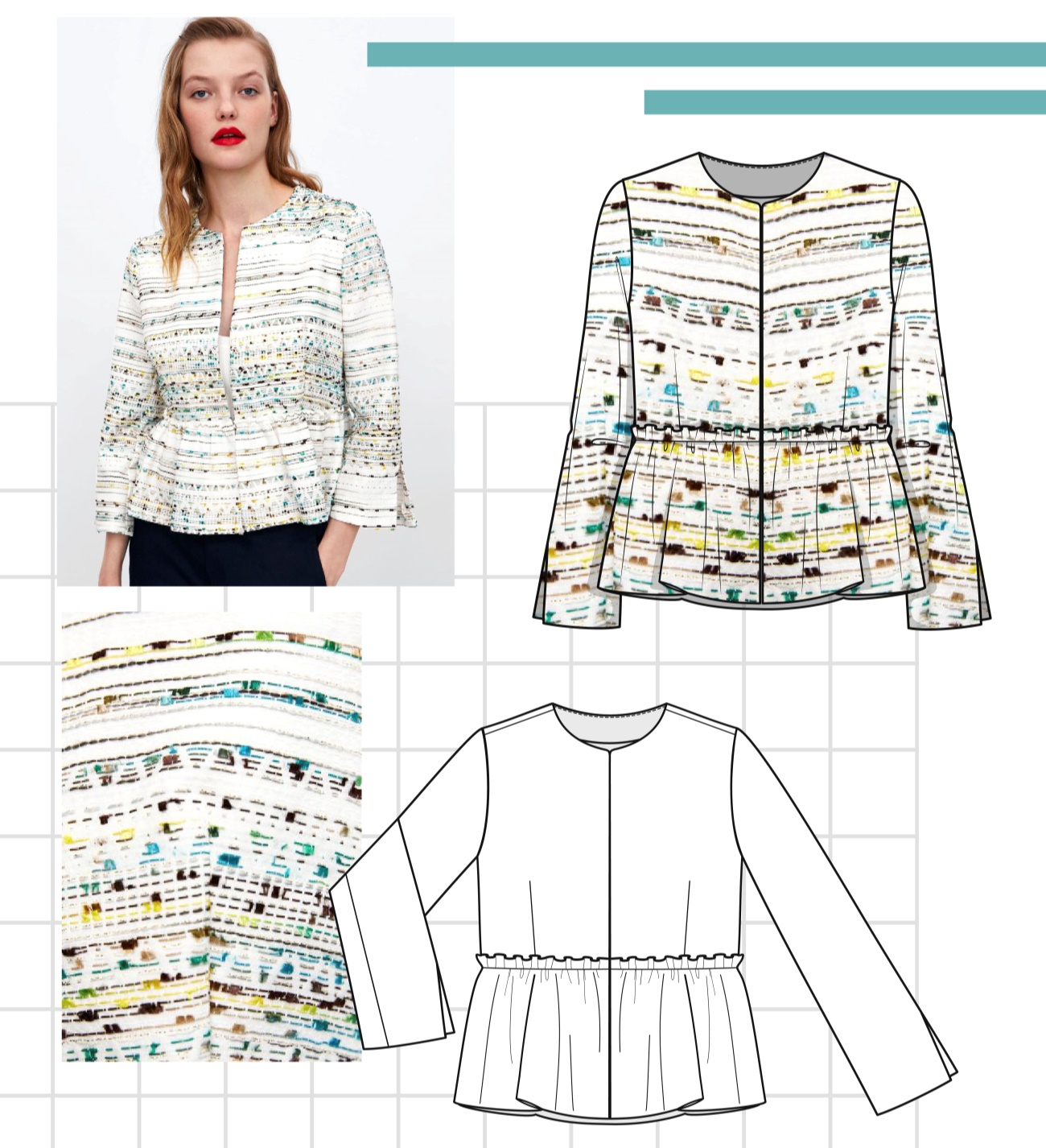 Рисунок 1.9 – Технический рисунок блузки в документации (artwork) для зарубежной компании, дизайнер Алина Мороз