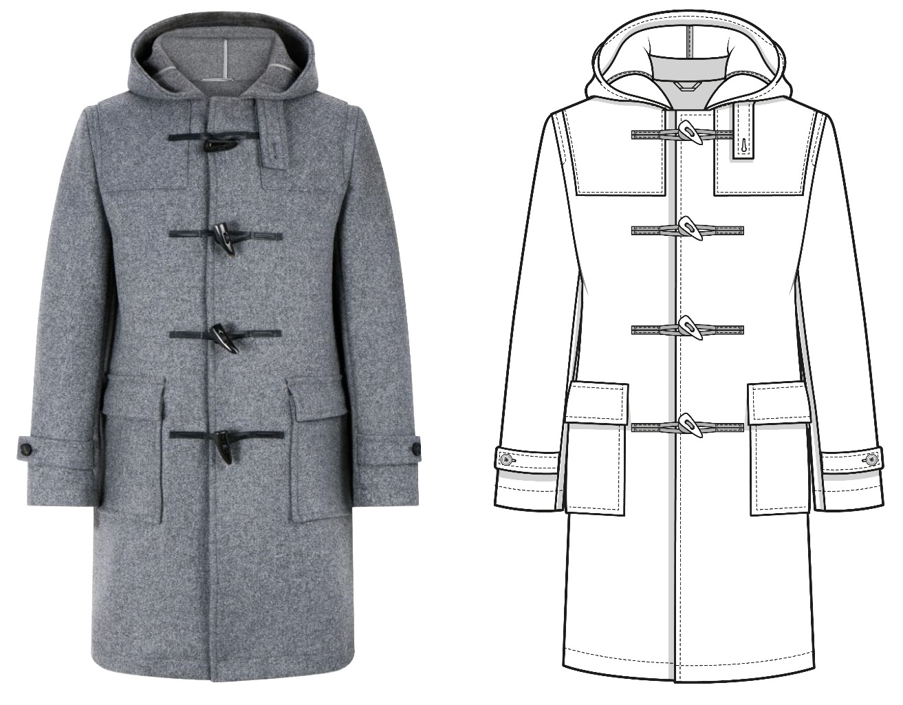 Рисунок 1.6 – Технический рисунок пальто дафлкот