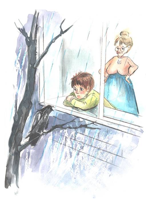 Боря представляет, что ворона – это бабушка Жанна, и ему становится смешно. Потом в голову закрадывается мысль, что, может, птице просто некуда лететь, поэтому она терпит и ветер, и дождь. Нет у неё ни друзей, ни родни, как у бабушки Жанны, у которой только Боря и его мама с папой.