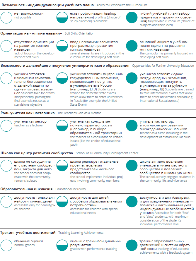 During the expert surveys, interviewees named a set of school models. Based on this set, reference models were selected, taking into account the frequency of expert mentions, the breadth of their practical application, and the clarity of the framework: