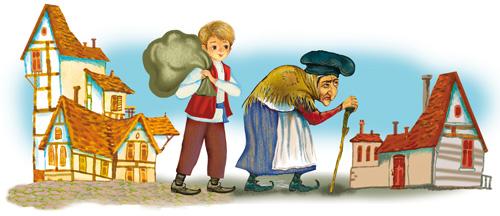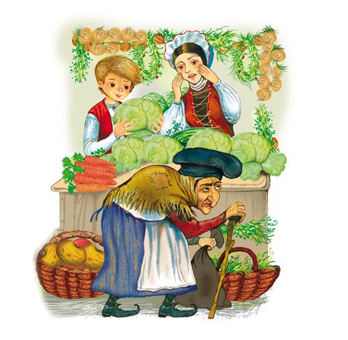– Хорошо, пусть будет по-твоему! – воскликнула старуха со злобным взглядом. – Я куплю у тебя эти шесть кочанов. Но посмотри, я должна опираться на палку и ничего не могу нести. Позволь своему сынку отнести товар ко мне на дом, я дам ему за это хорошую награду.