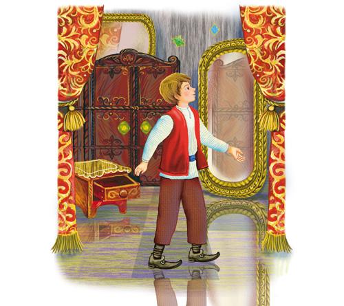 Теперь у старухи прошла вся хромота и шатание в стороны. Она отбросила палку и стала очень быстро скользить по стеклянному полу, увлекая с собой за руку маленького Якоба. Наконец она остановилась в комнате, уставленной разной мебелью и похожей на кухню, хотя столы из красного дерева и покрытые богатыми коврами диваны подходили скорее к парадной комнате.